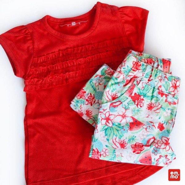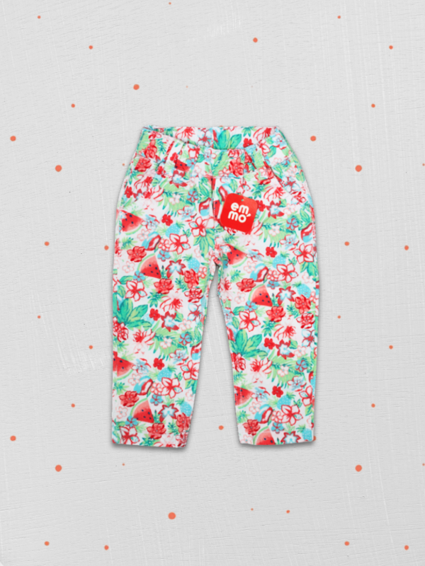 Pantalón de beba de gabardina estampada con cintura elastizada